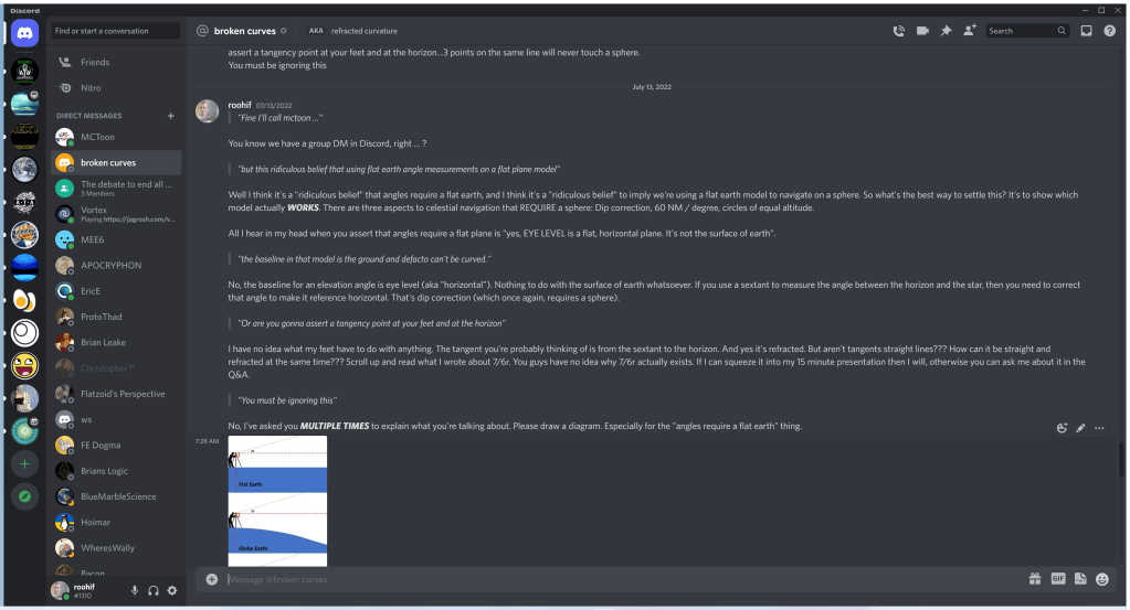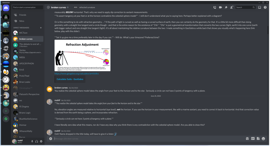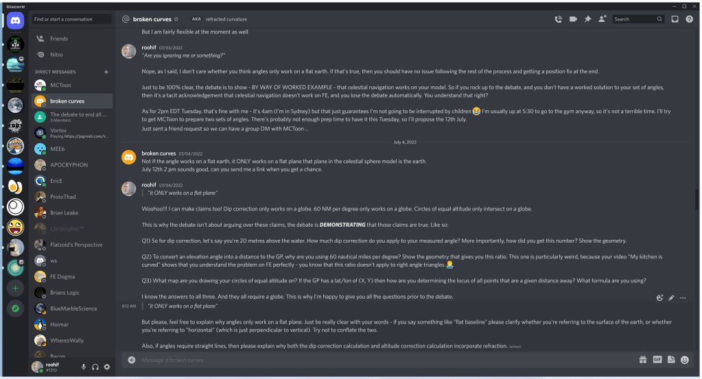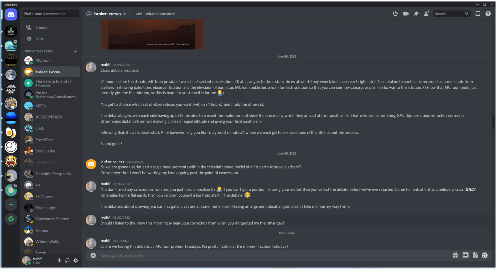 Roohif and John aka Refracted Curvature have agreed to a live head-to-head challenge where each person is given a unique set of star angle measurements and will demonstrate by way of example how celestial navigation determines the location fix on their asserted earth shape.