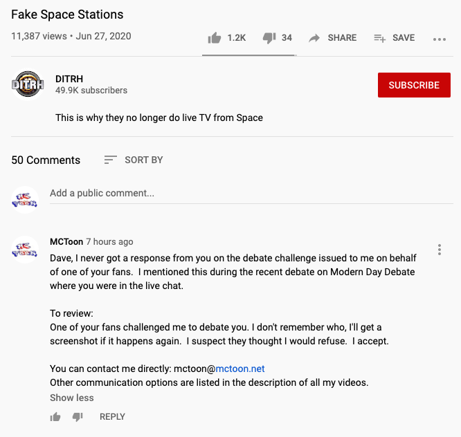 You can see his video here note that you will not see any comments from me. Below is the screenshot of my comment.