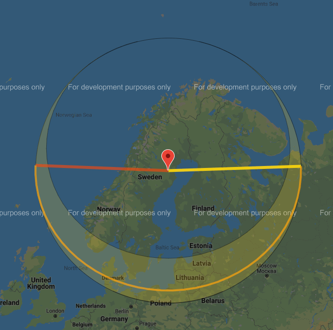 When we place the observation of the sunrise angle for Norway/Sweden on a flat map we immediately see this doesn’t match observations.