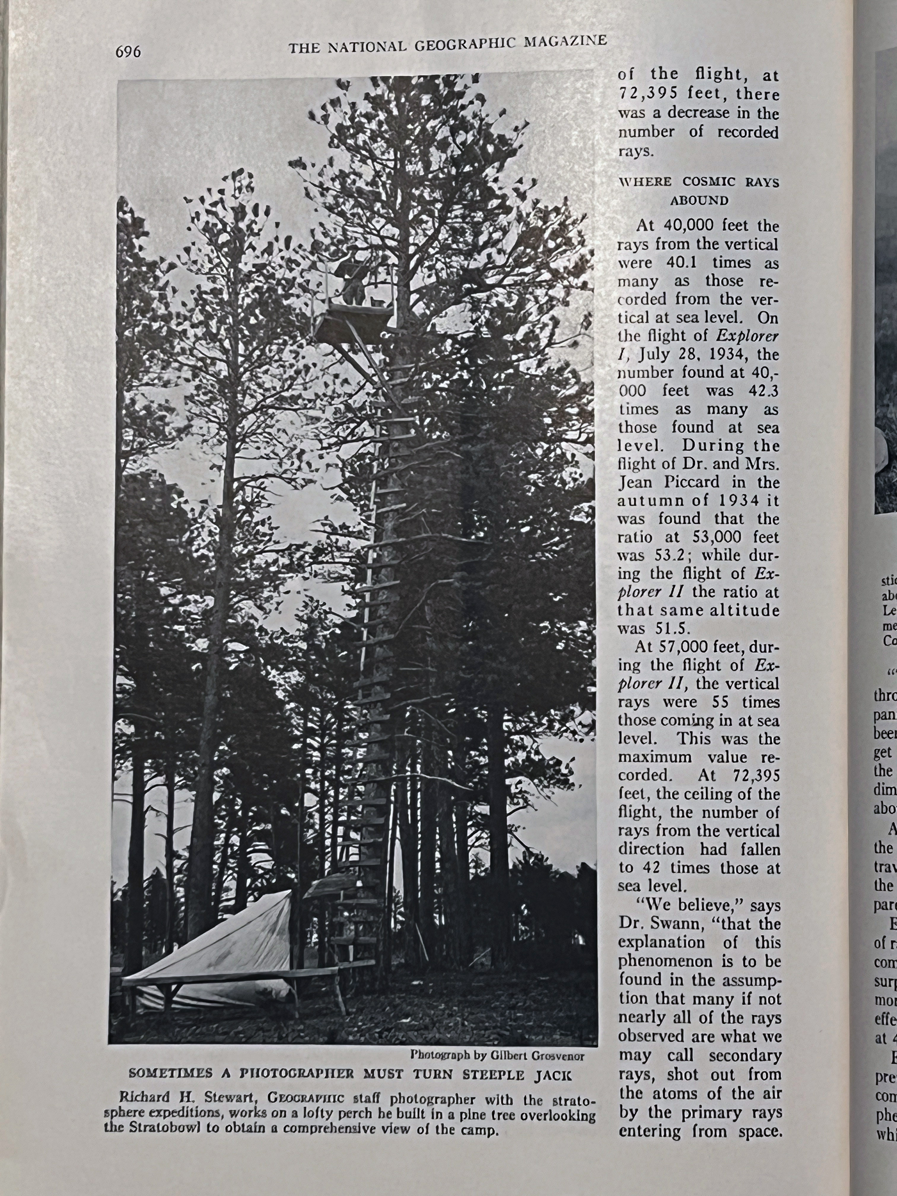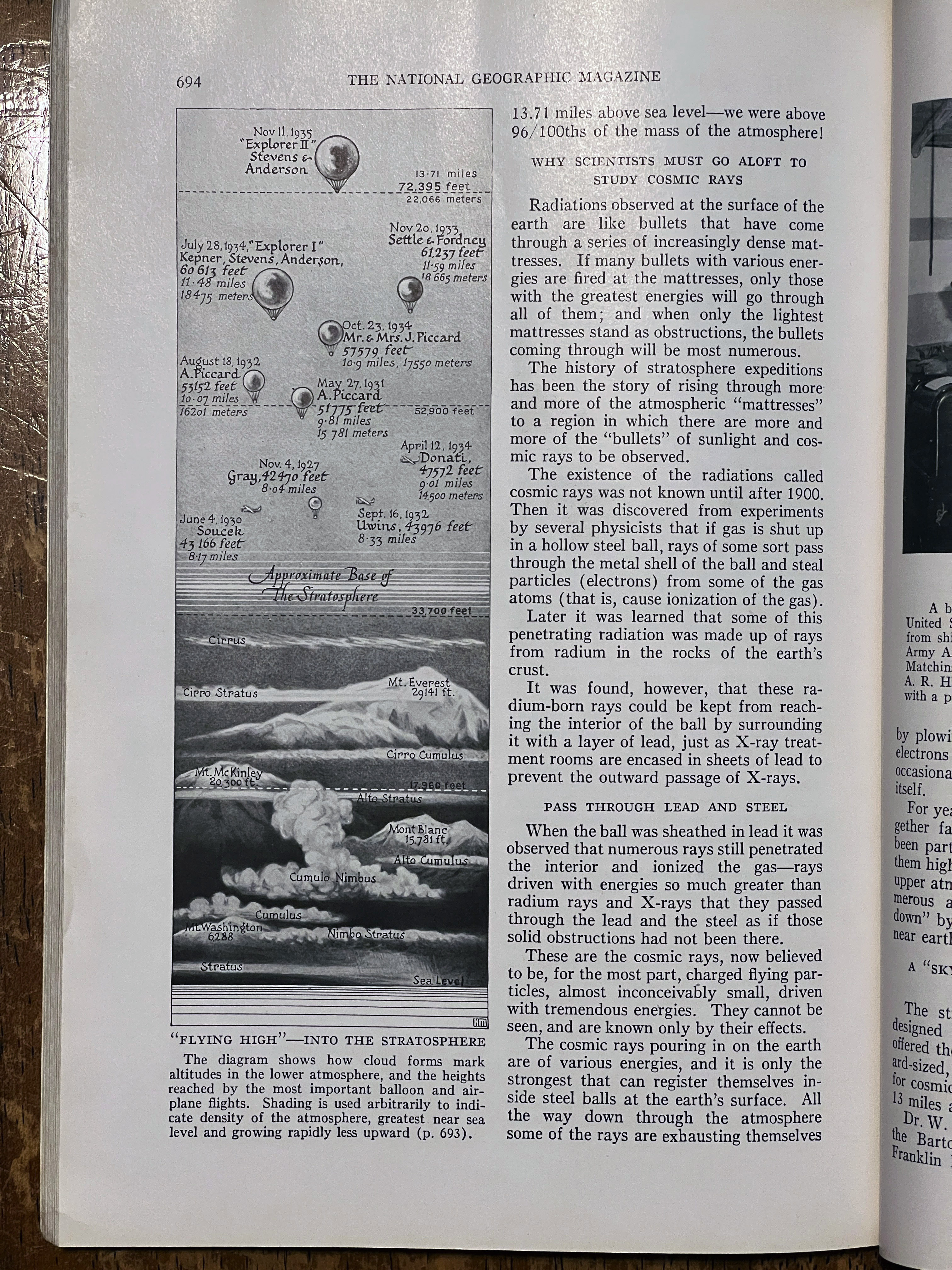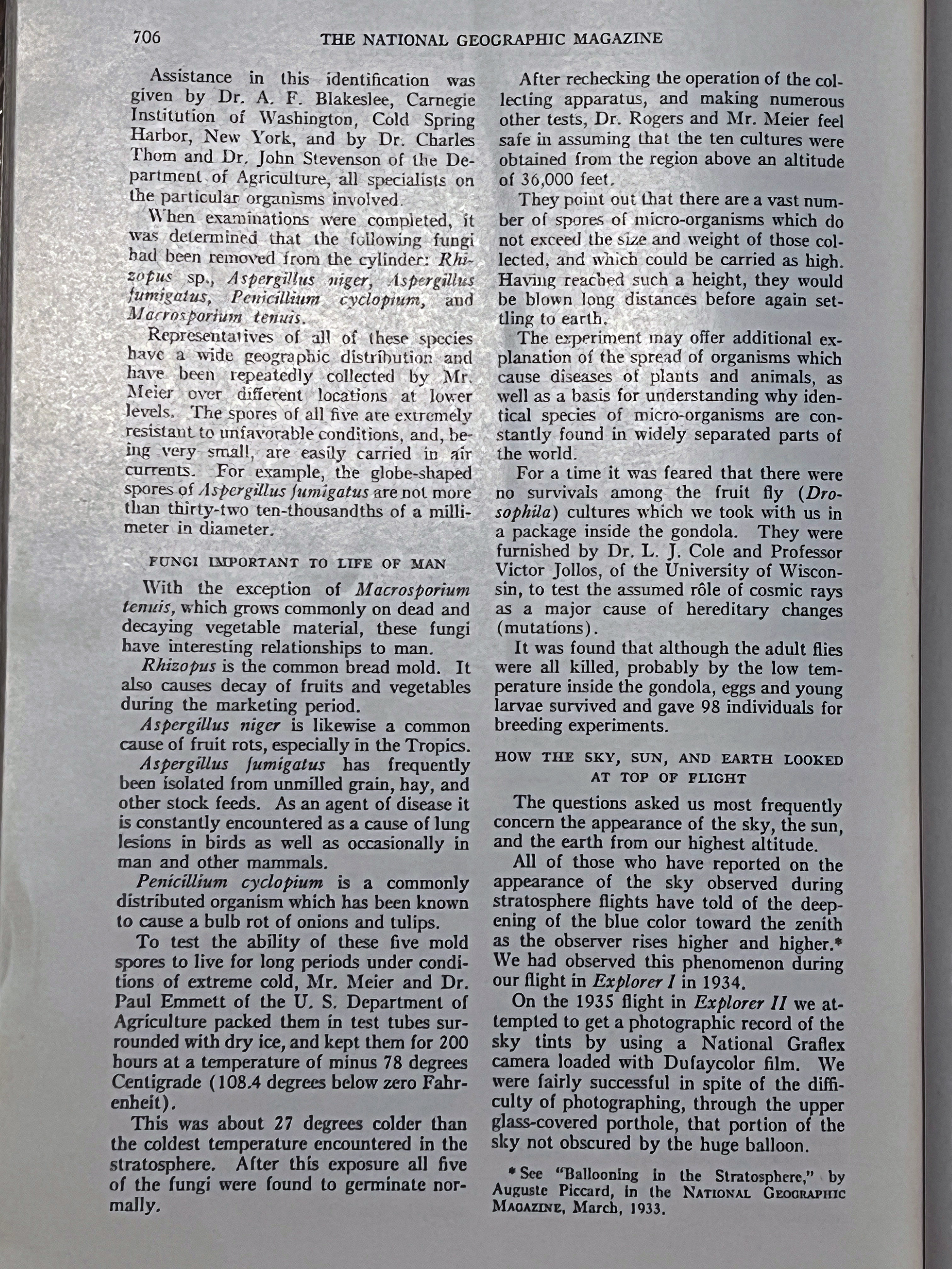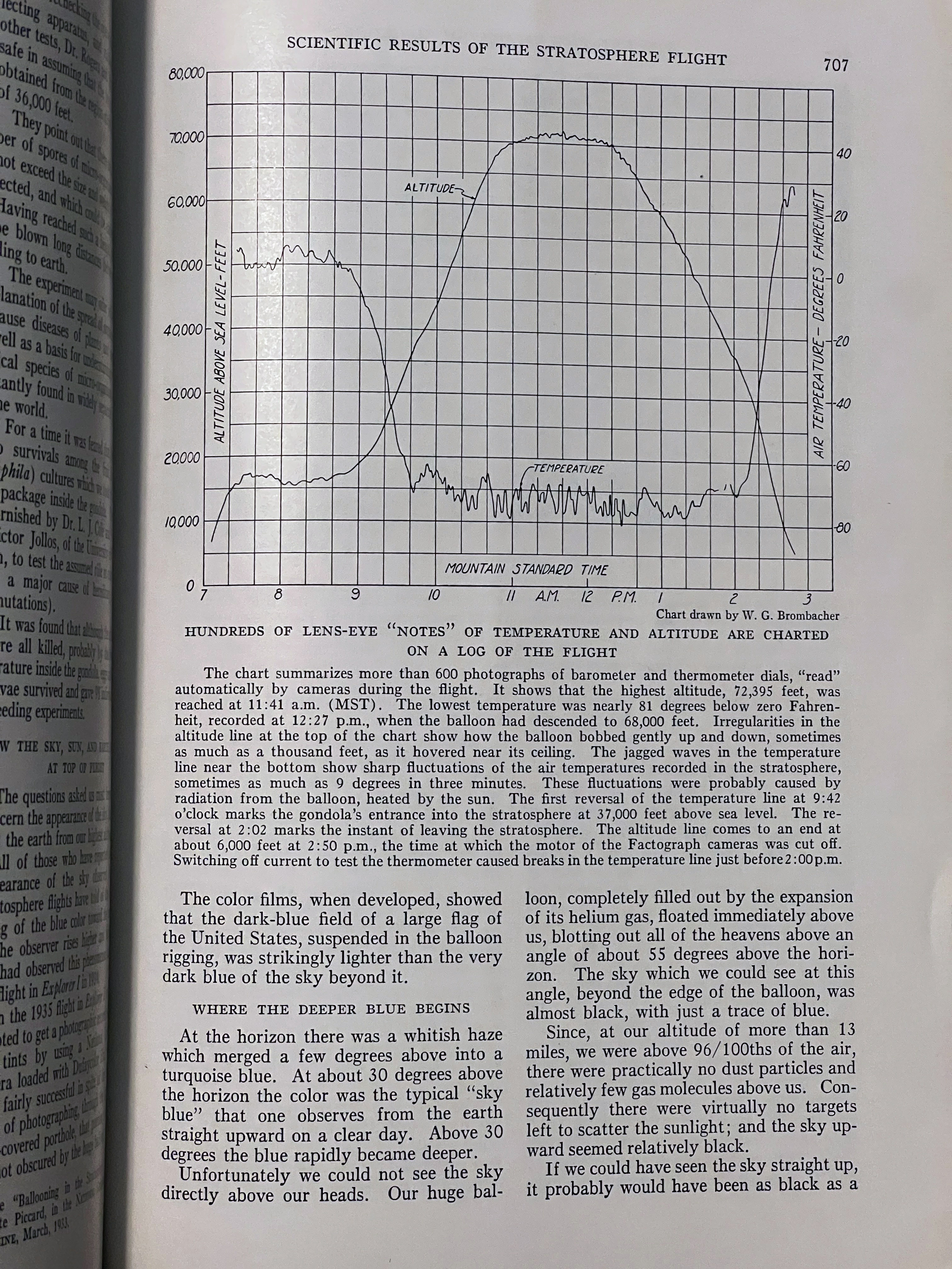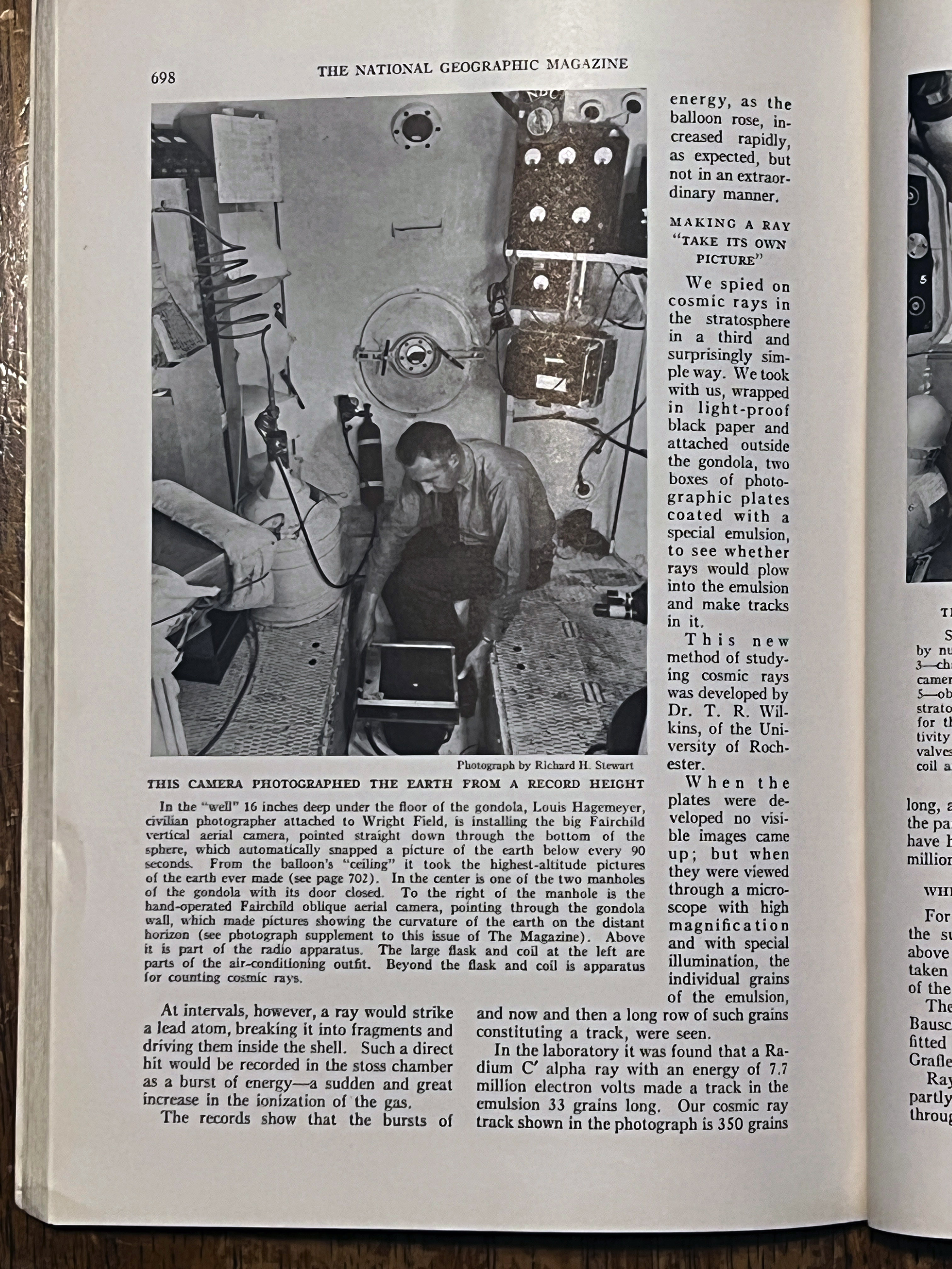 On November 11, 1935 Albert W. Stevens took a specially designed infrared camera to a height of 72,395 feet over South Dakota. Albert took the first photograph of the left to right curvature of the earth. This was published in the May 1936 issue of National Geographic. A 35″x17″ insert was included in the issue. I purchased a copy of the magazine and the fold out. A high-resolution scan of the insert is included below.