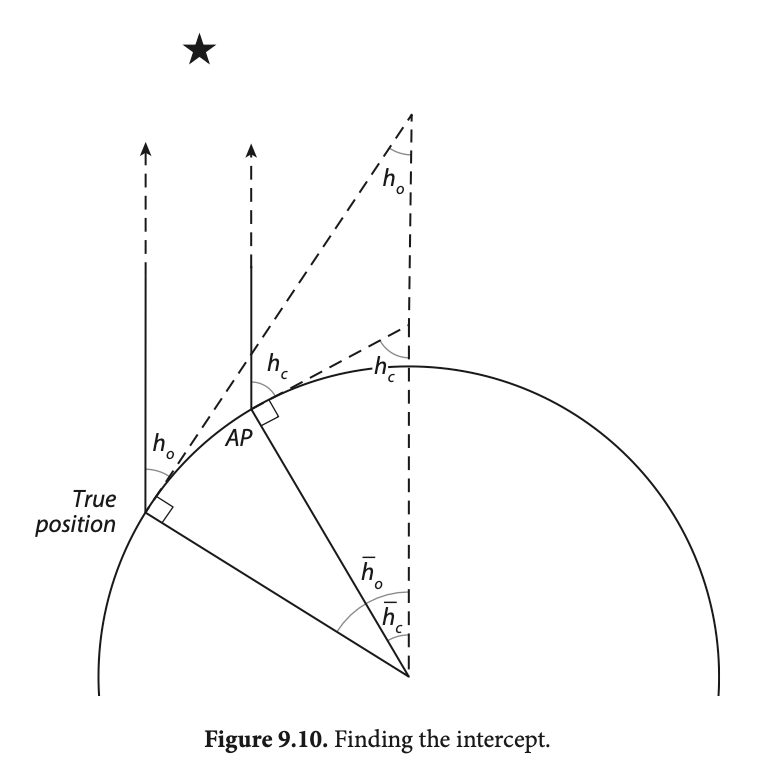 Not only is this a spherical triangle, something totally anathema to the idea of the flat earth dirt pizza, but it’s also not triangulation. Instead it is a technique to determine the observer’s position on the surface of a sphere. This includes an application of the Haversine formula, which is a difficult method if you lack a modern calculator. The chapter covers solving the spherical triangle using The Method of Saint Hilaire.