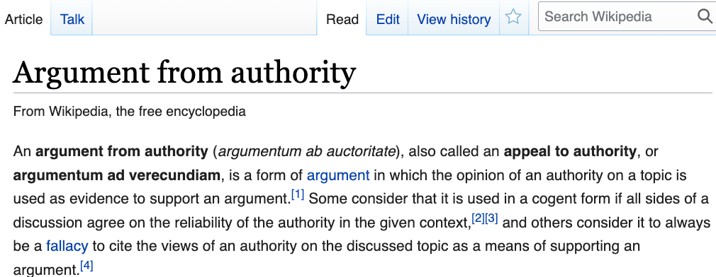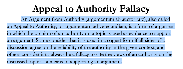 Pages 50-53 steals the majority of the Wikipedia article on Argument from authority.