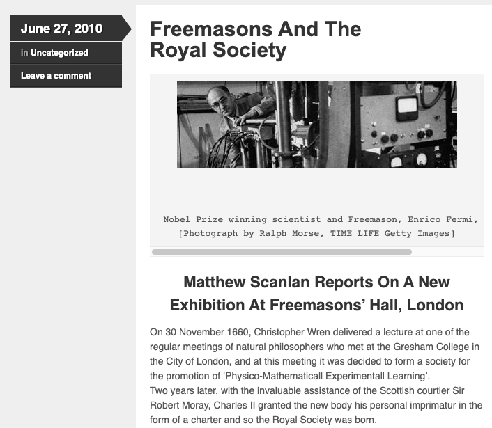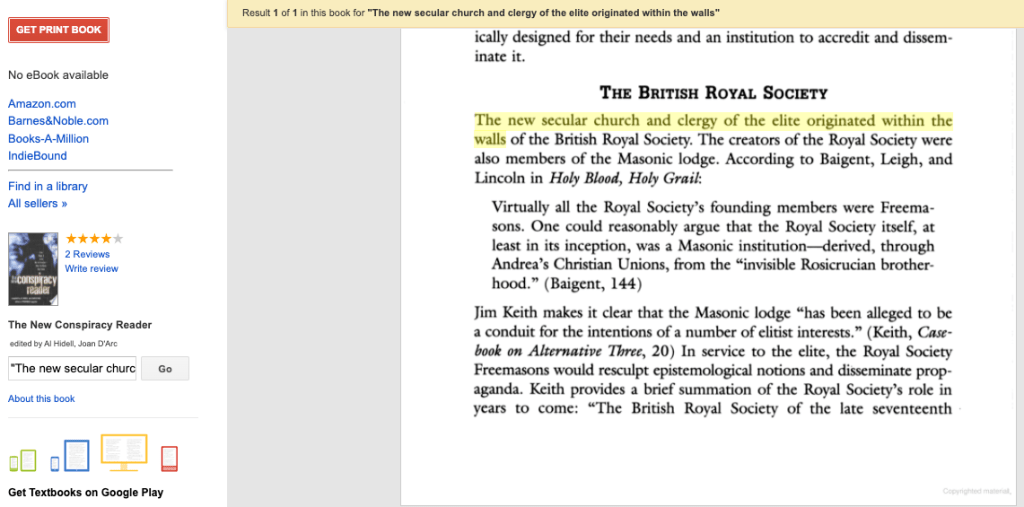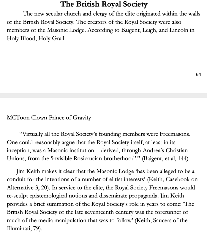 Pages 65-71 are lifted verbatim from an article on a WordPress site called “Freemasons And The Royal Society”. He does include a link to the source at the end but does not indicate that 6 pages of text are not his own, but just copy-pasted from someone else.