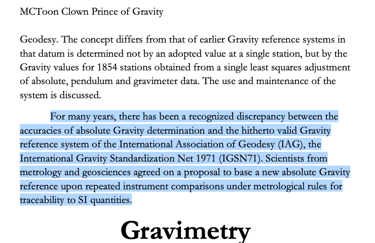 Even his critiques on gravimetry, misunderstood by Greg, are not his own. Page 70 steals from “Towards the Definition and Realization of a Global Absolute Gravity Reference System” by H. Wilmes, L. VitushkinV. Pálinkáš, R. Falk, H. Wziontek, and S. Bonvalot.