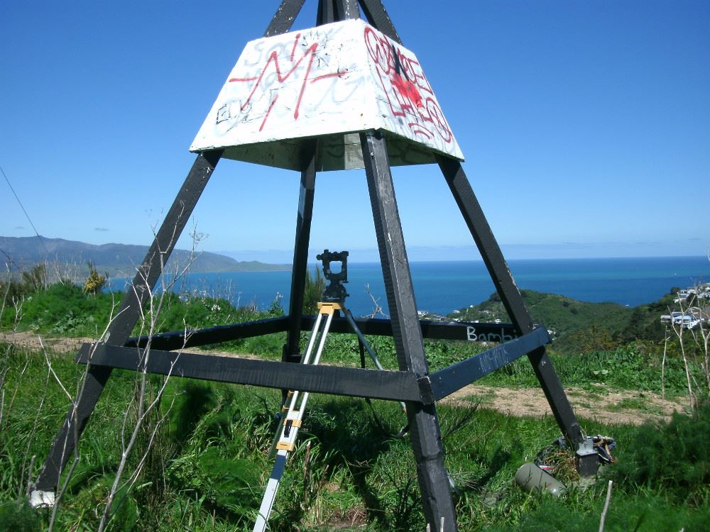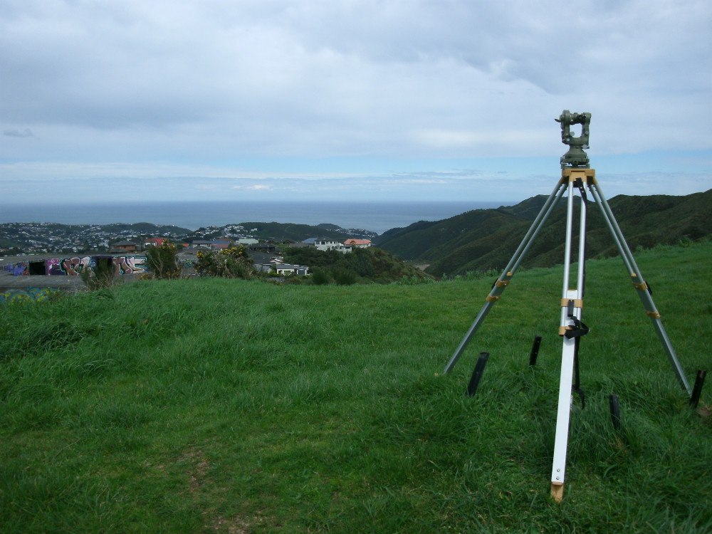 The theodolite used is a Wild Heerbrugg Switzerland T2-55209, made in 1956.