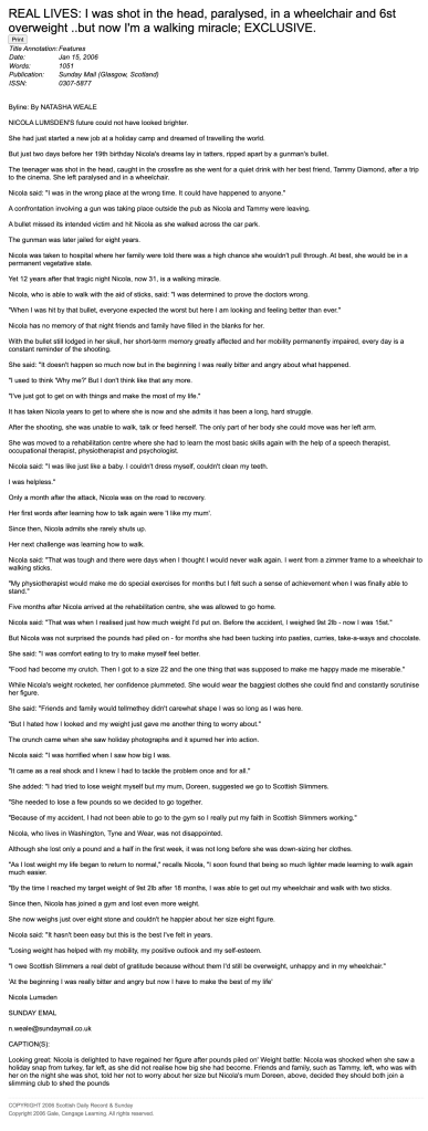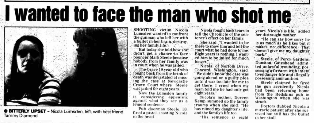 Mark Steele shot and permanently crippled Nicola Lumsden in a late-night alcohol-fueled argument in 1993.