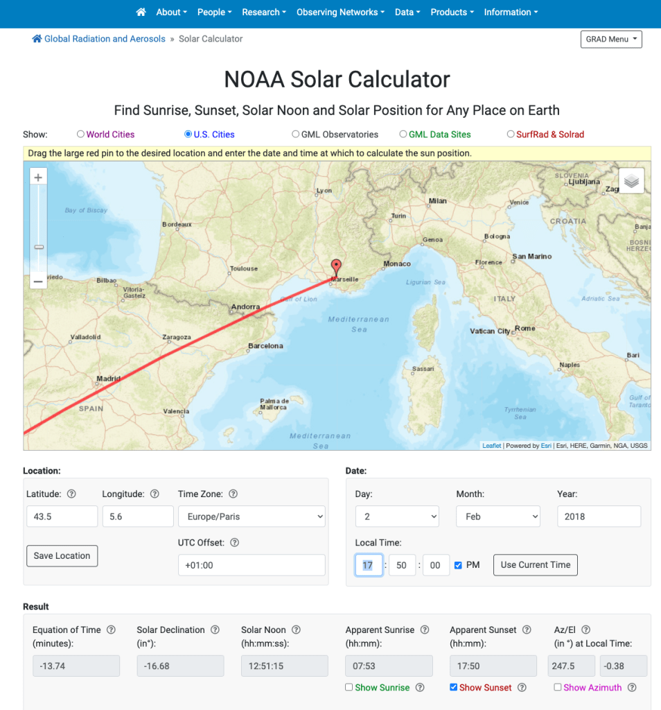 - NOAA Solcalc: