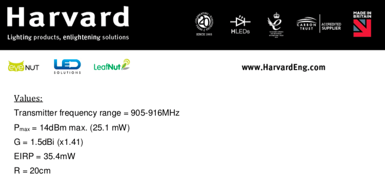 Fortunately, the EIRP of the antenna has already been analyzed, see the image below, click on it to get the original document. The analysis is from the same product sold in the US transmitting at 915MHz instead of 868MHz in the UK. All other things are the same. This is the documentation submitted to the US FCC for approval before allowing it to be sold in the US.