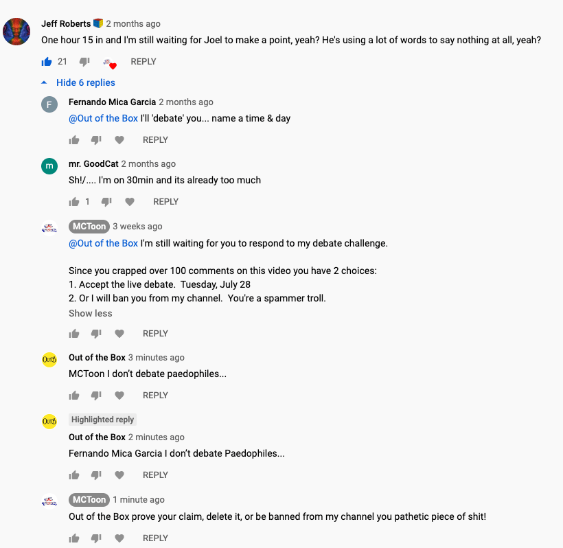 Pathetic Piece of Excrement: Out of the Box Out of the Box is forever banned from my channel for unsubstantiated lies. People like this turd don’t belong in society. Share this: Click to share on X (Opens in new window) X Click to share on Facebook (Opens in new window) Facebook Like Loading...