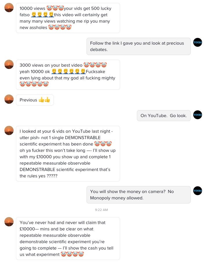 The Rabster on TikTok demanded a debate. He even claimed to have £10,000 for a “globe proof”. So I agreed, set the date, created the video stream, then he blocked me.