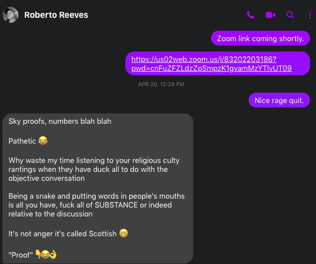 Some people have claimed that I kicked Roberto off the stream. This is more flat earth lies. Here is the screen shot of our conversation immediately before and after the live stream: