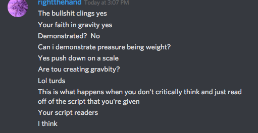 I moderated a debate on flat earth between Kris as “Right the Hand” and Planarwalk. Kris doesn’t know what the equator is, what pressure is, how to measure force. He constantly interrupts and is horribly rude. Watch it here if you can stomach it: https://www.youtube.com/watch?v=-9FVvUv928g