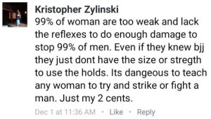 Kris Zylinski is always wrong about everything. He likes to make insulting comments to all women: