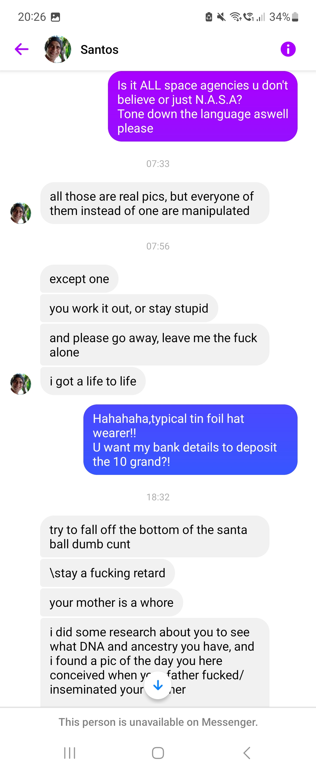 Santos issued a fake challenge to provide a “Real slash true photo of the earth” for $10,000. I easily did this and received this response: