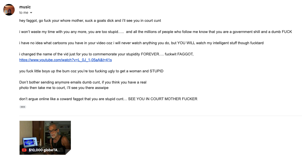 This is a typical email chain from Santos. The links were to nonsense videos, but the attached images were apparently from his personal beastality collection.