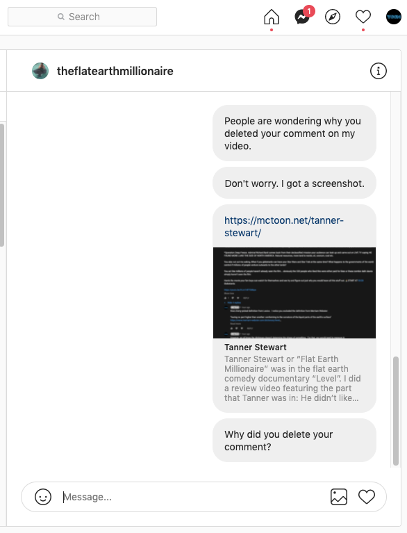 Tanner Stewart or “Flat Earth Millionaire” was in the flat earth comedy documentary “Level”. I did a review video featuring the part that Tanner was in: https://youtu.be/p3IXw1hJoa0