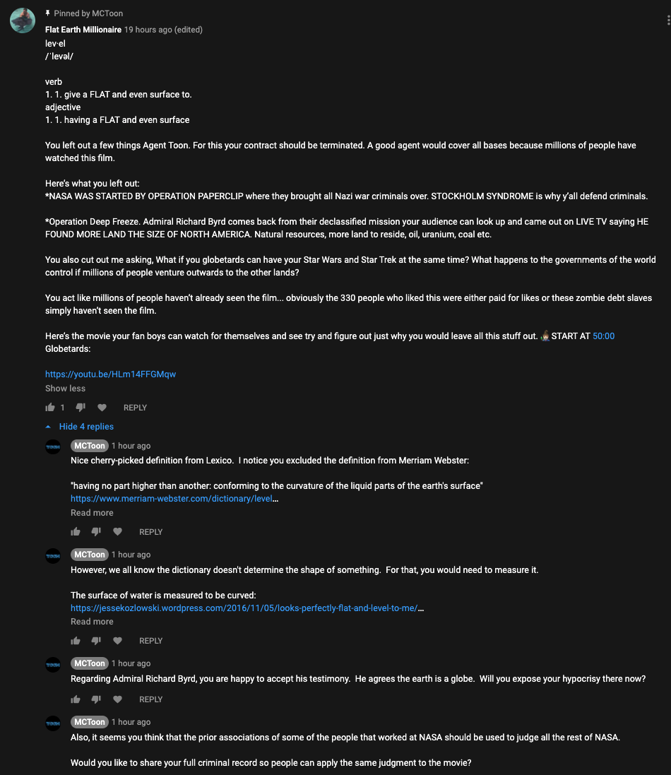 Tanner thinks a cherry picked definition for “level” from Lexico is all you need to look up to determine the shape of the earth. He ignores other sources, like from Merriam-Webster:
