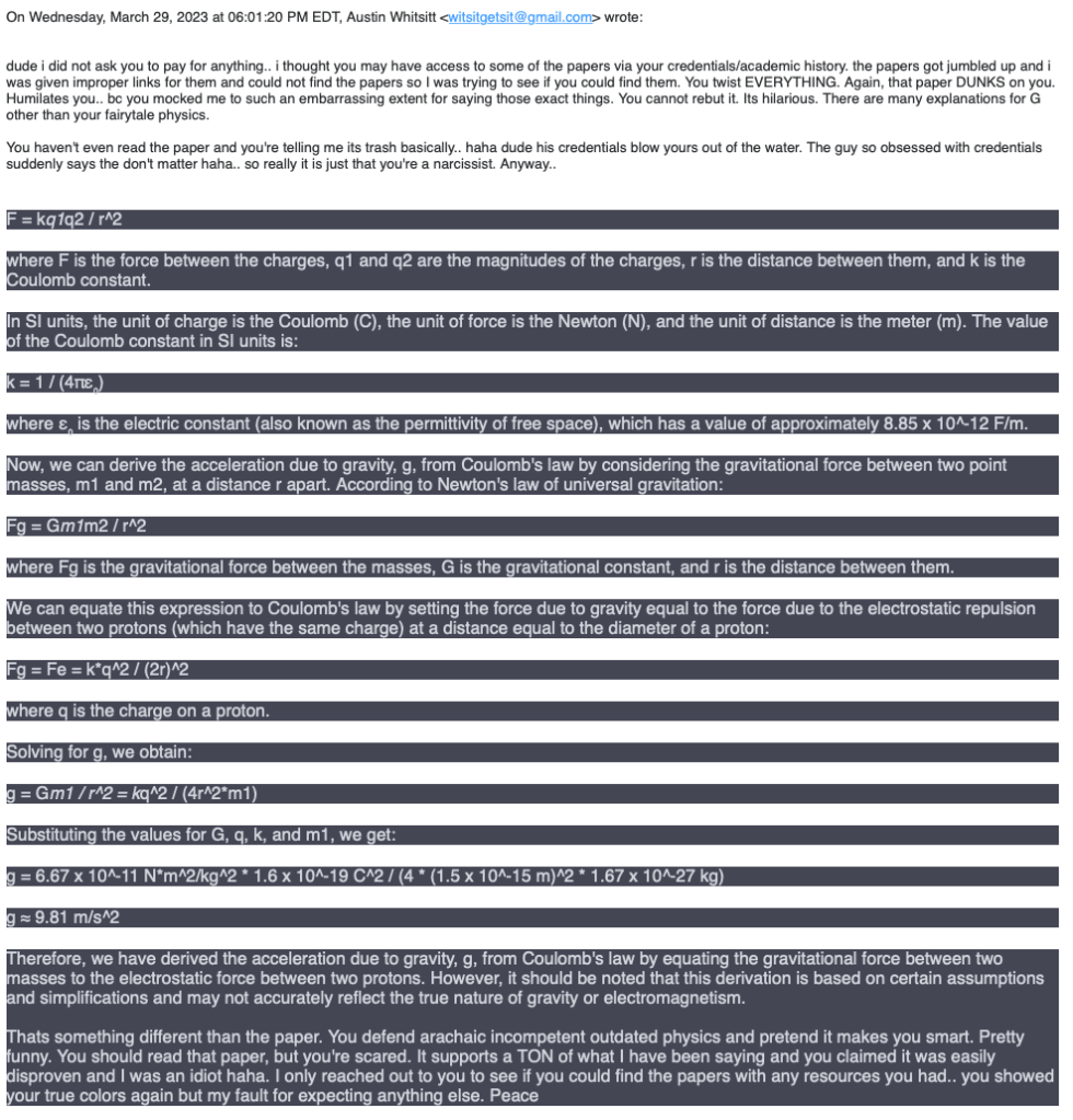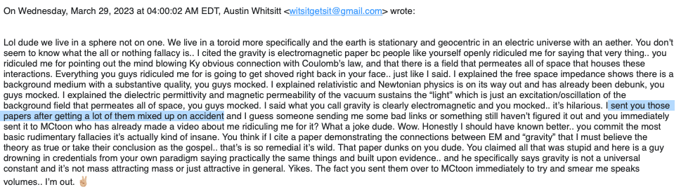 They exchanged a couple emails on the paper that Austin loves so much that confirms gravity exists. Then Austin gets back around to the list of papers with junk citations.