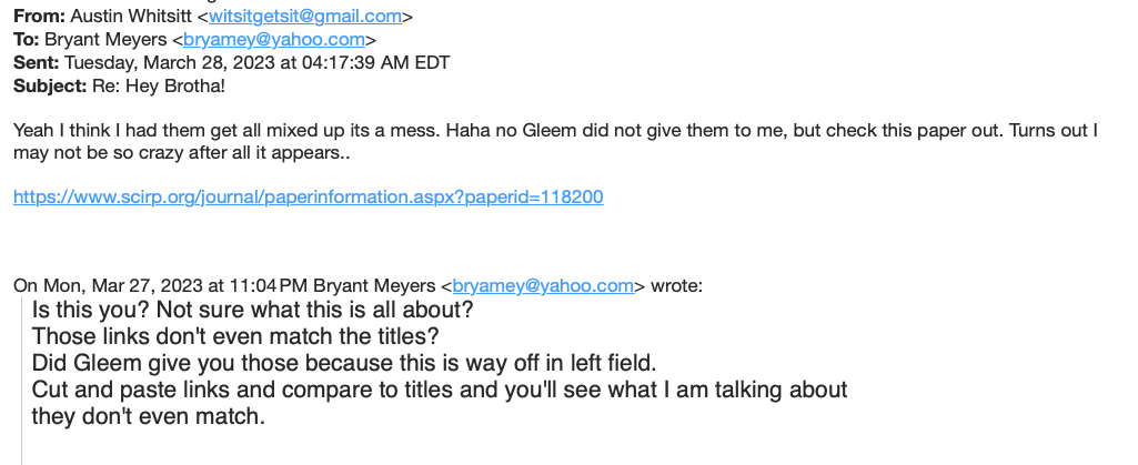Bryant again responded asking why Witsit asked him to pay for access to the articles. Witsit says “i did not ask you to pay for anything”. Then this “the papers got jumbled up and i was given improper links for them”. Story change #2.