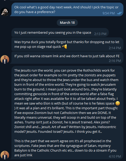 So l am having someone on my show to break everything down with resources this week and i will just send you that stream. Because that’s kind of my point, this take is what no one is actually talking about or laying out. I can send you some info in the mean time though. So they do not care if everyone just points to the Jews imo they have decided to throw them under the bus. They are satanists, they do not care about their own.