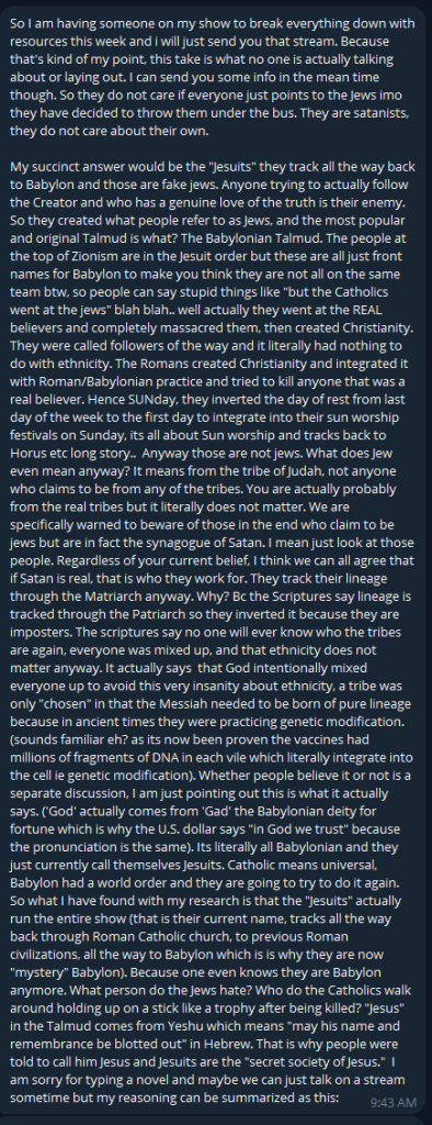 On March 18, 2024 Austin Whitsitt sent his personal religion about Jews, Jesuits, and Babylonians to BigTech. Below is the text followed by the screenshots.